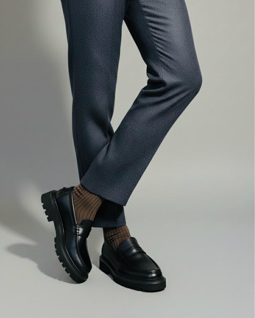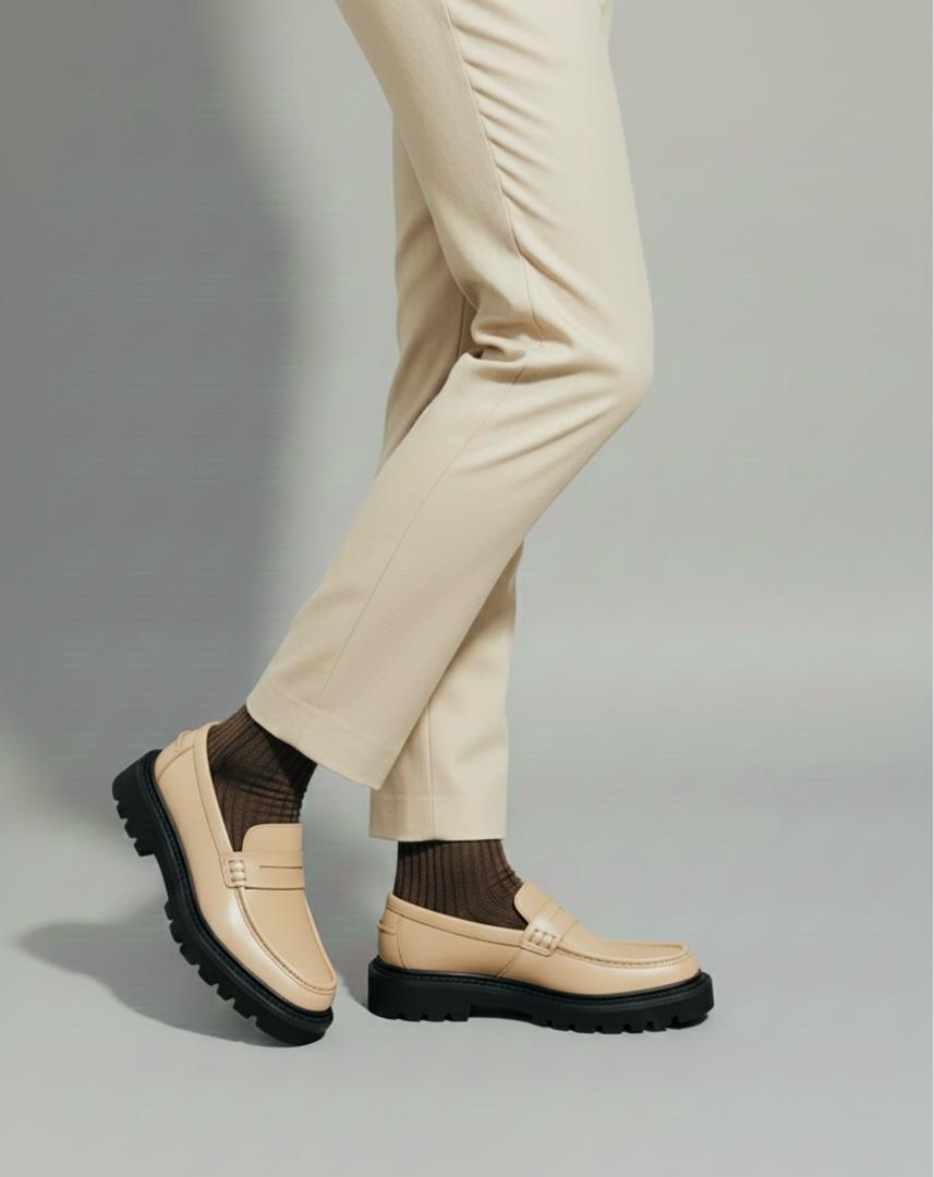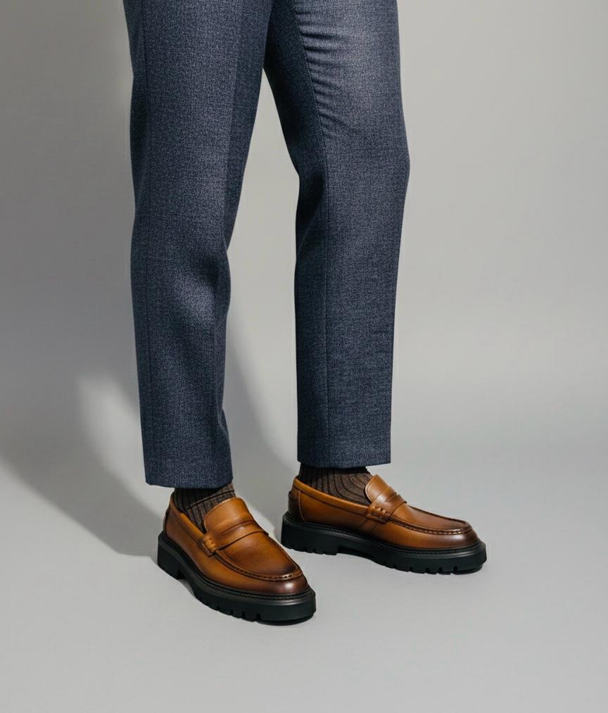 Design Rajeuni : Le Penny Loafer traditionnel est rehaussé par une semelle chunky, le rendant idéal pour les looks urbains et tendance.